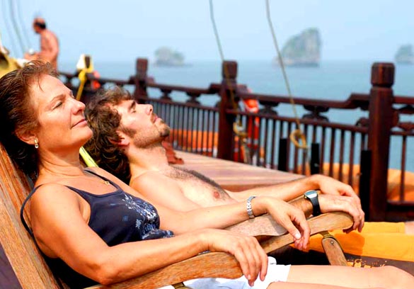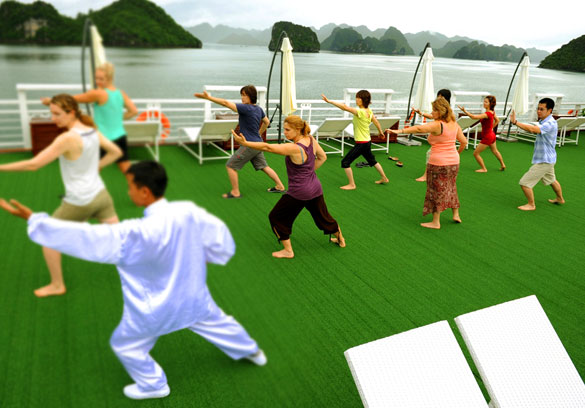 - Trải nghiệm chèo kayak, tắm biển, tiệc hoàng hôn, lớp học nấu ăn, và BBQ tối lãng mạn trên boong tàu.