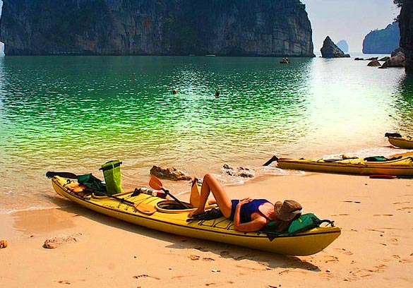 Amanda Luxury Cruise du thuyền 5 sao được nhiều du khách yêu thích tại vịnh Hạ Long thưởng thức ẩm thực hải sản, chèo kayak, tắm biển..