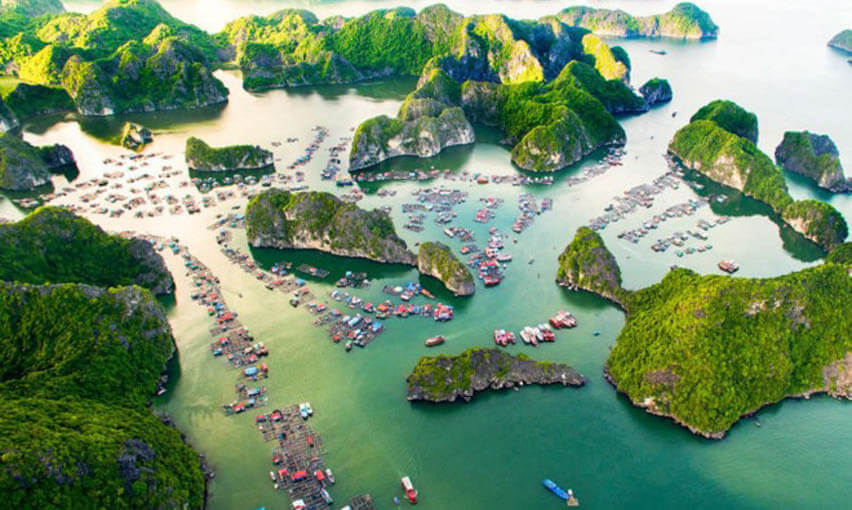 - Khám phá vịnh Lan Hạ đi qua các điểm nổi tiếng Hang Sáng, Hang Tối, làng chài Cái Bèo, bãi Ba Trái Đào
