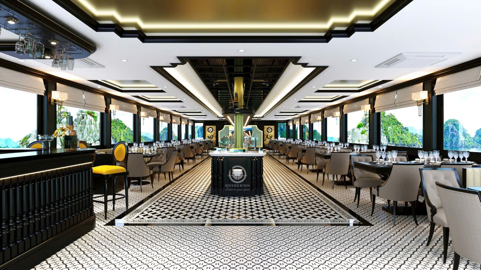 - Hệ thống nhà hàng sang trọng, sky bar, sundeck rộng cùng bể sục Jacuzzi ngoài trời mang đến không gian thư giãn tuyệt đối giữa biển khơi.