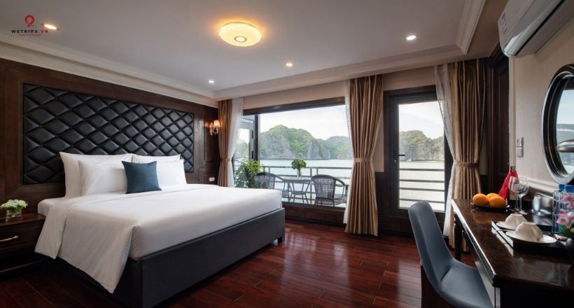 - Gồm cabin cao cấp có ban công riêng hướng vịnh, nội thất gỗ tự nhiên, trang bị đầy đủ tiện nghi chuẩn nghỉ dưỡng.