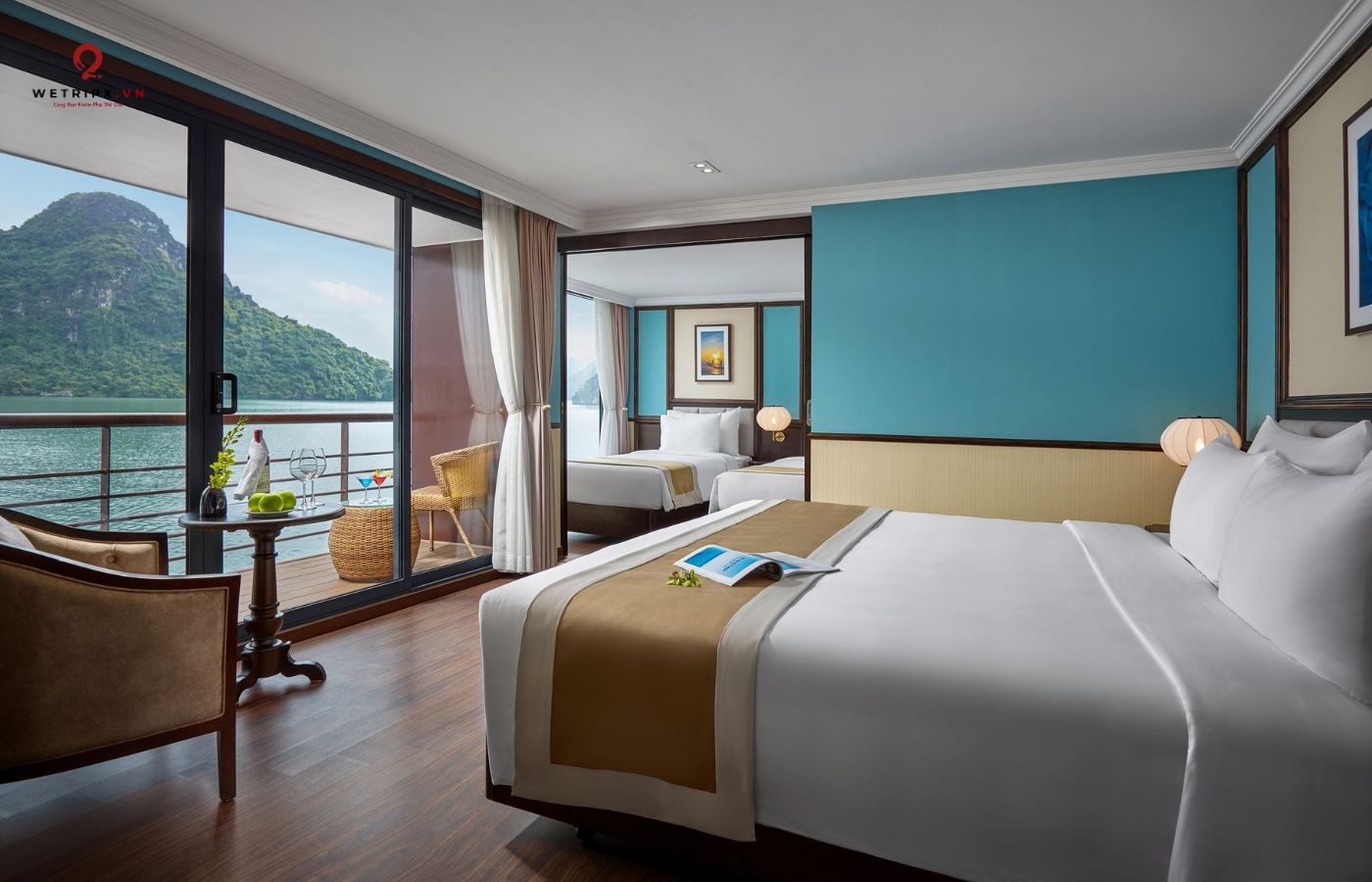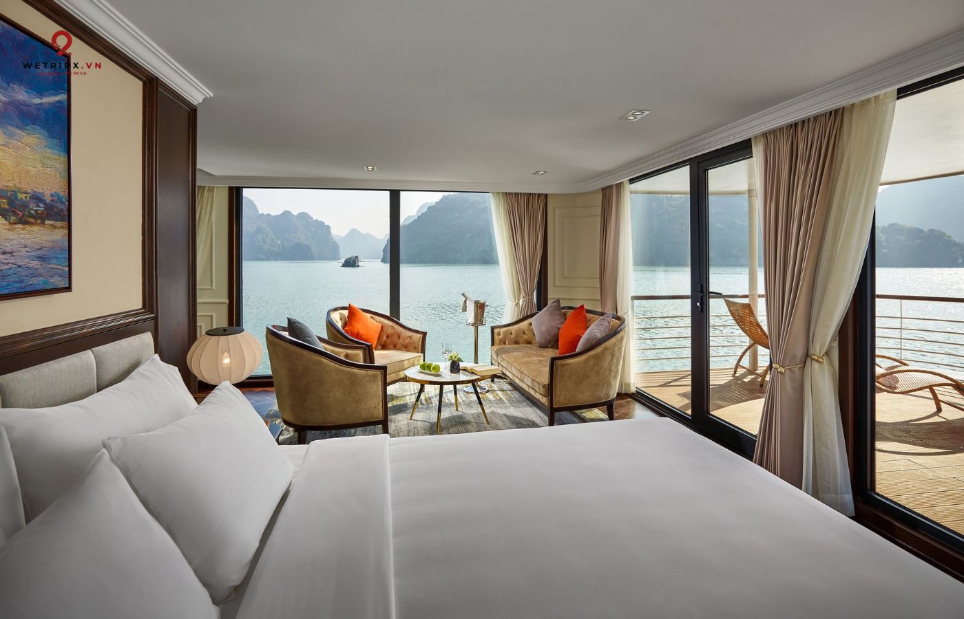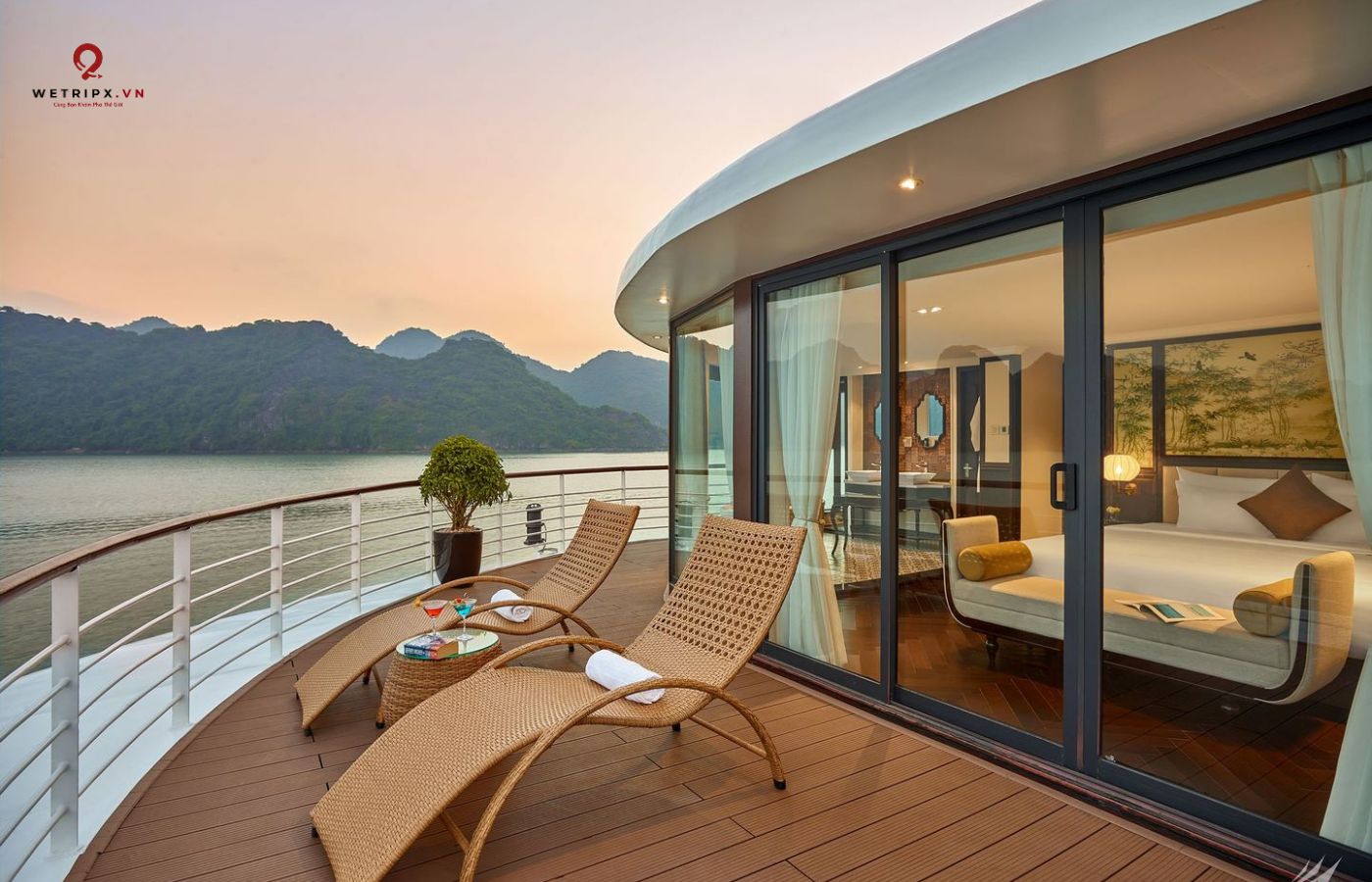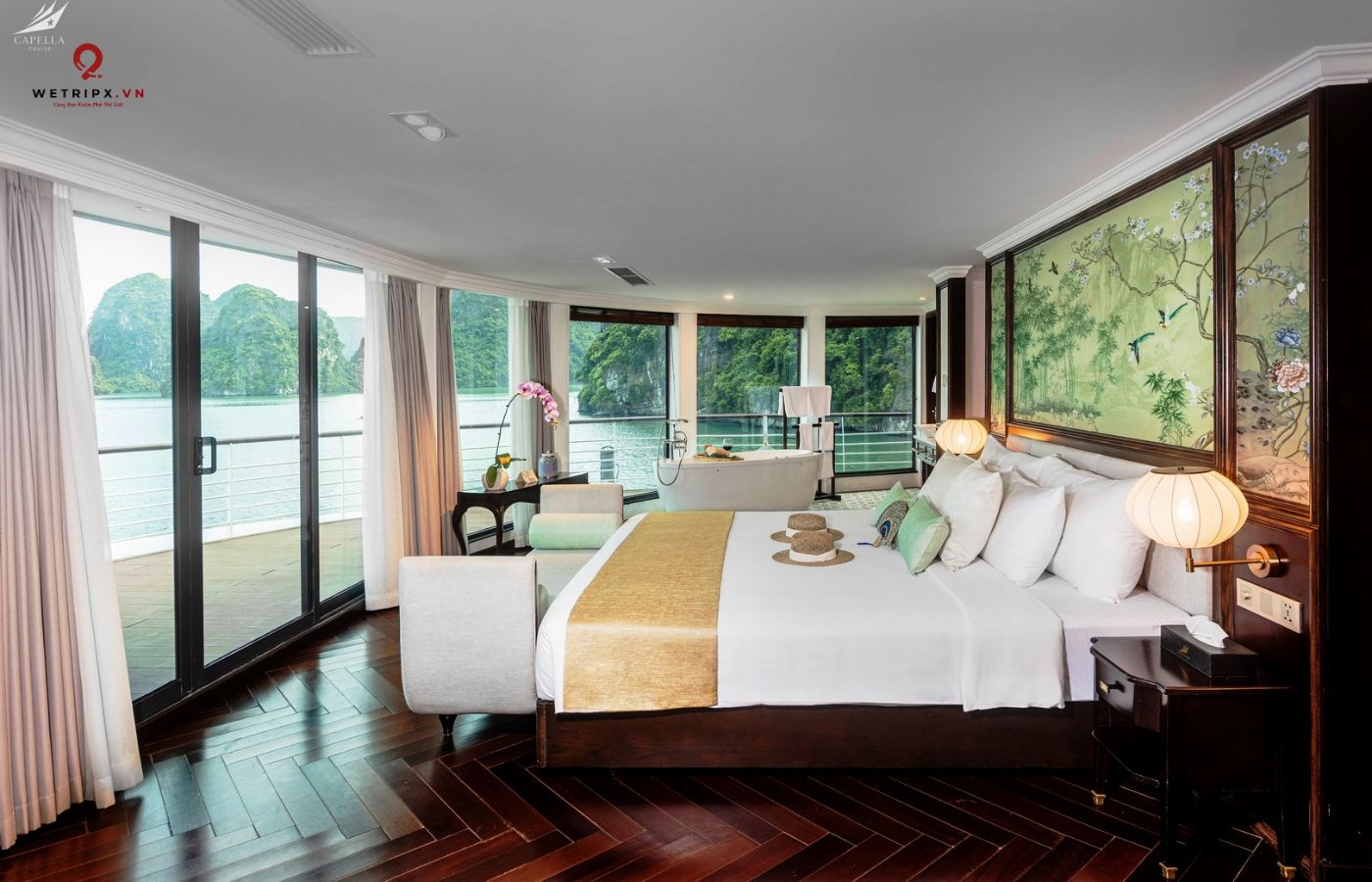 •   30 cabin cao cấp đều có ban công riêng, bồn tắm hướng vịnh và nội thất gỗ tự nhiên sang trọng.
