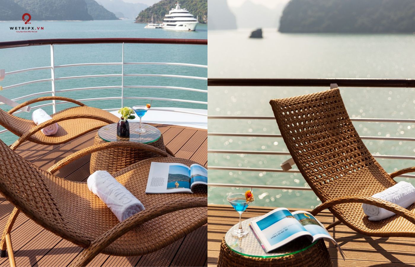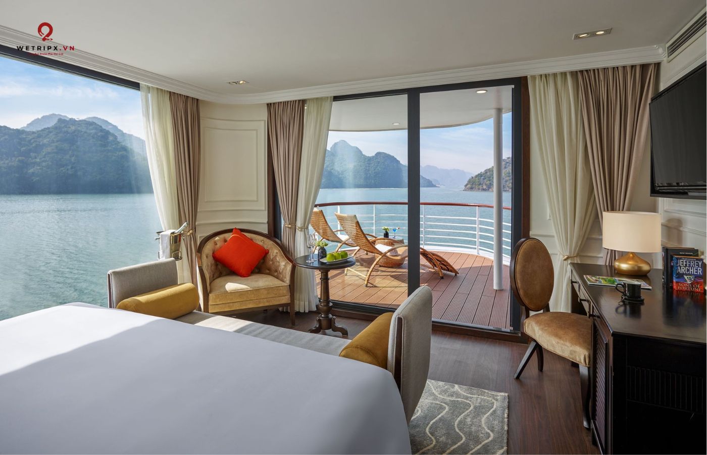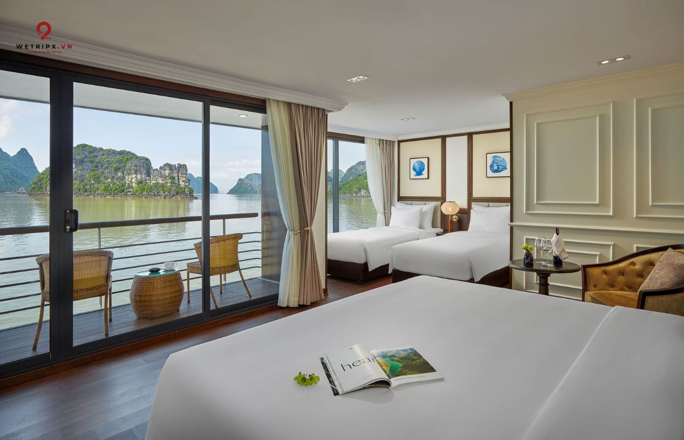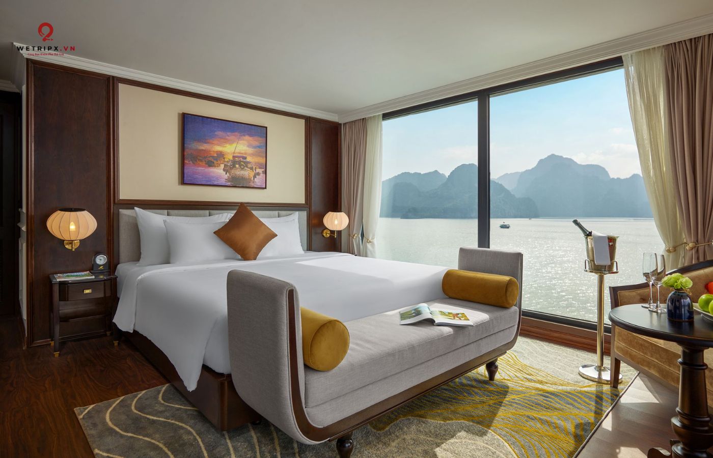 •   30 cabin cao cấp đều có ban công riêng, bồn tắm hướng vịnh và nội thất gỗ tự nhiên sang trọng.