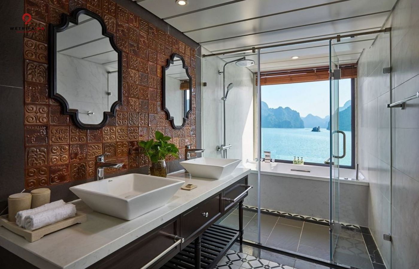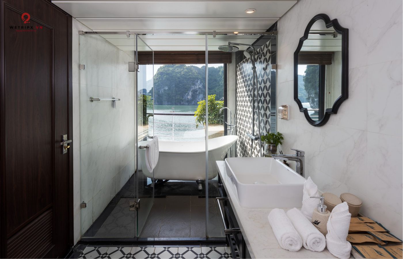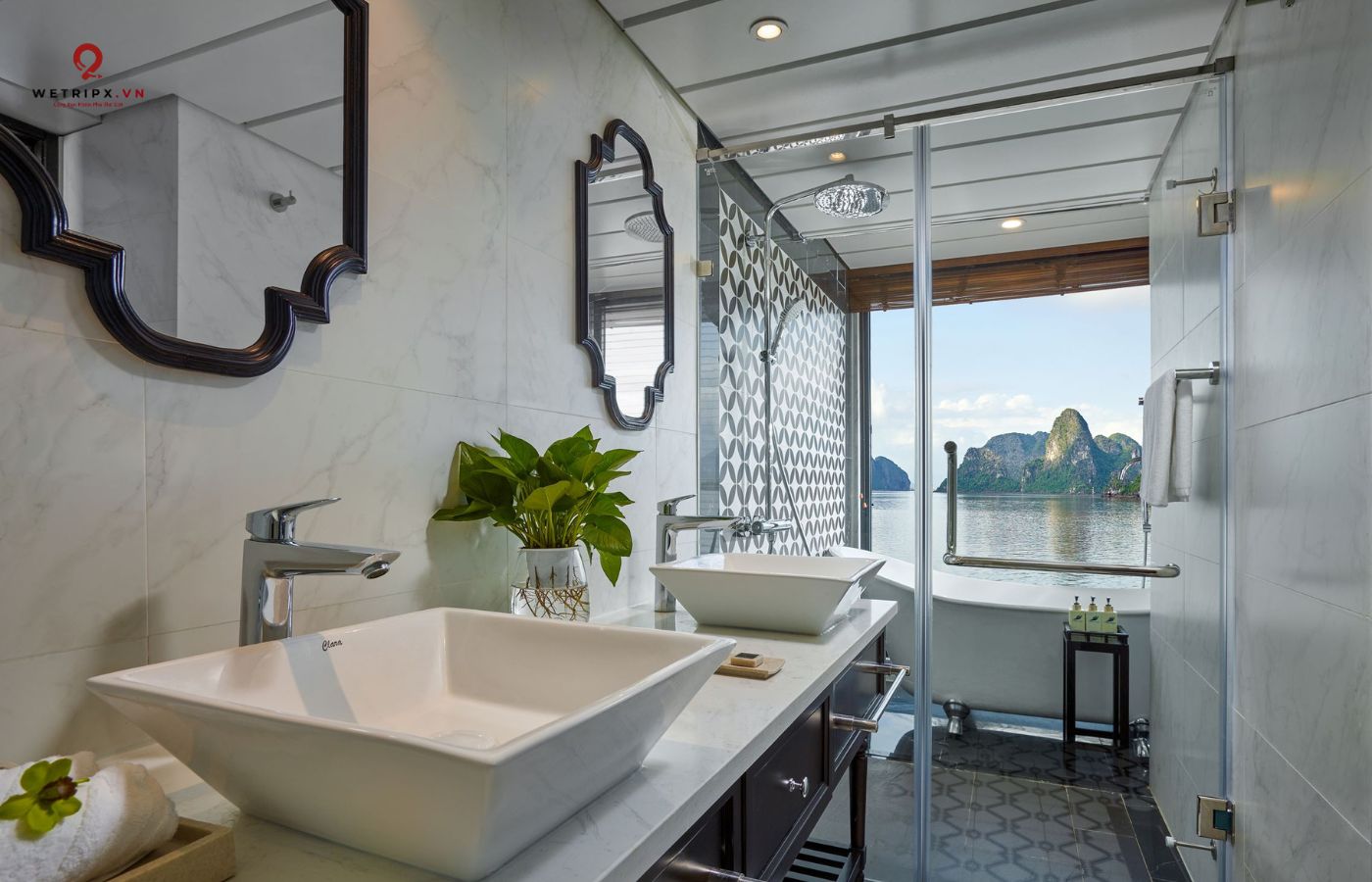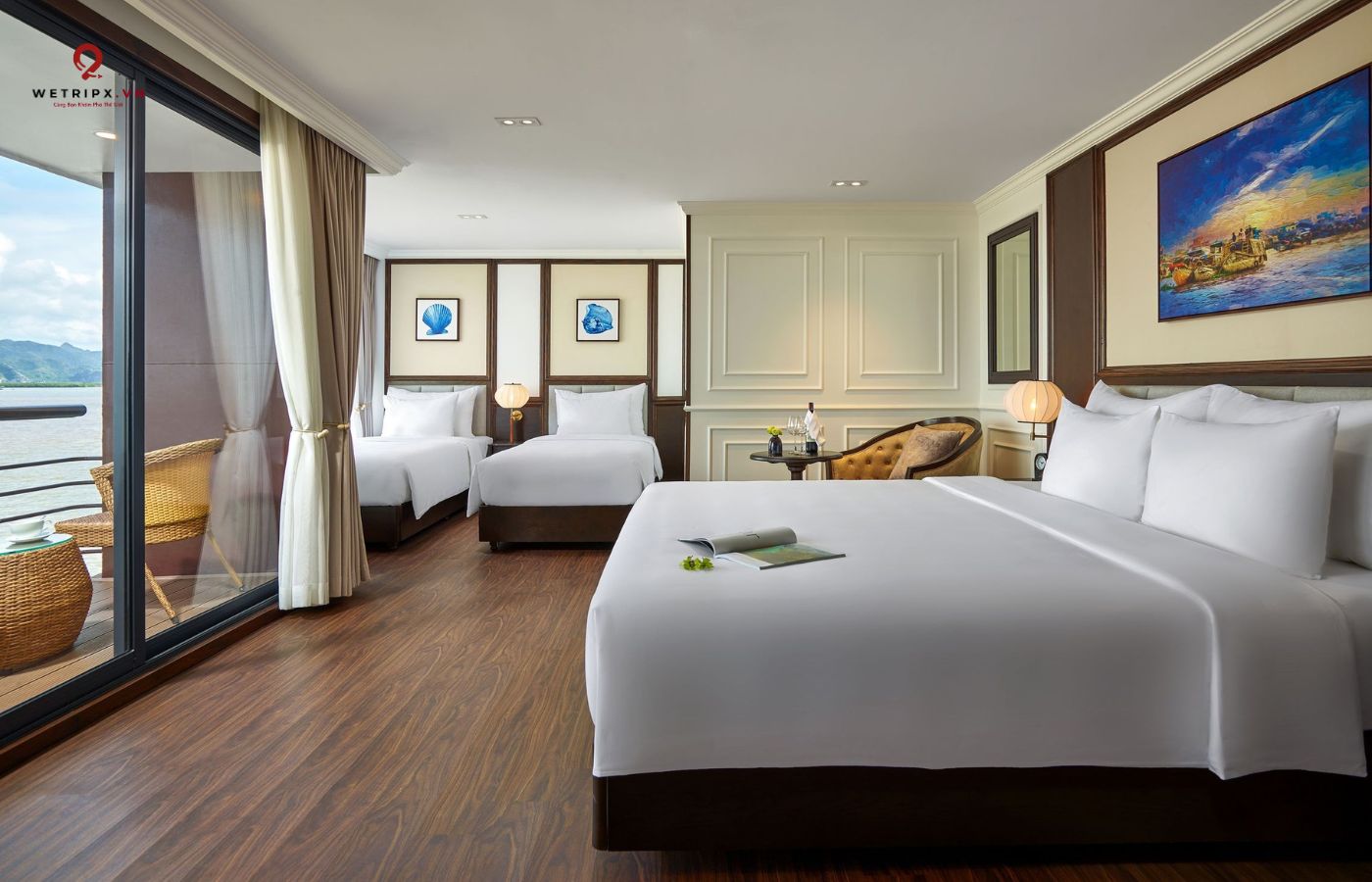 •   30 cabin cao cấp đều có ban công riêng, bồn tắm hướng vịnh và nội thất gỗ tự nhiên sang trọng.